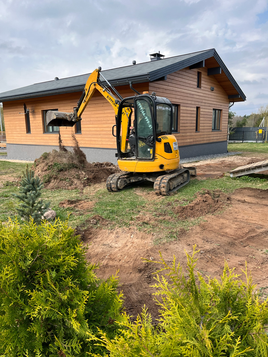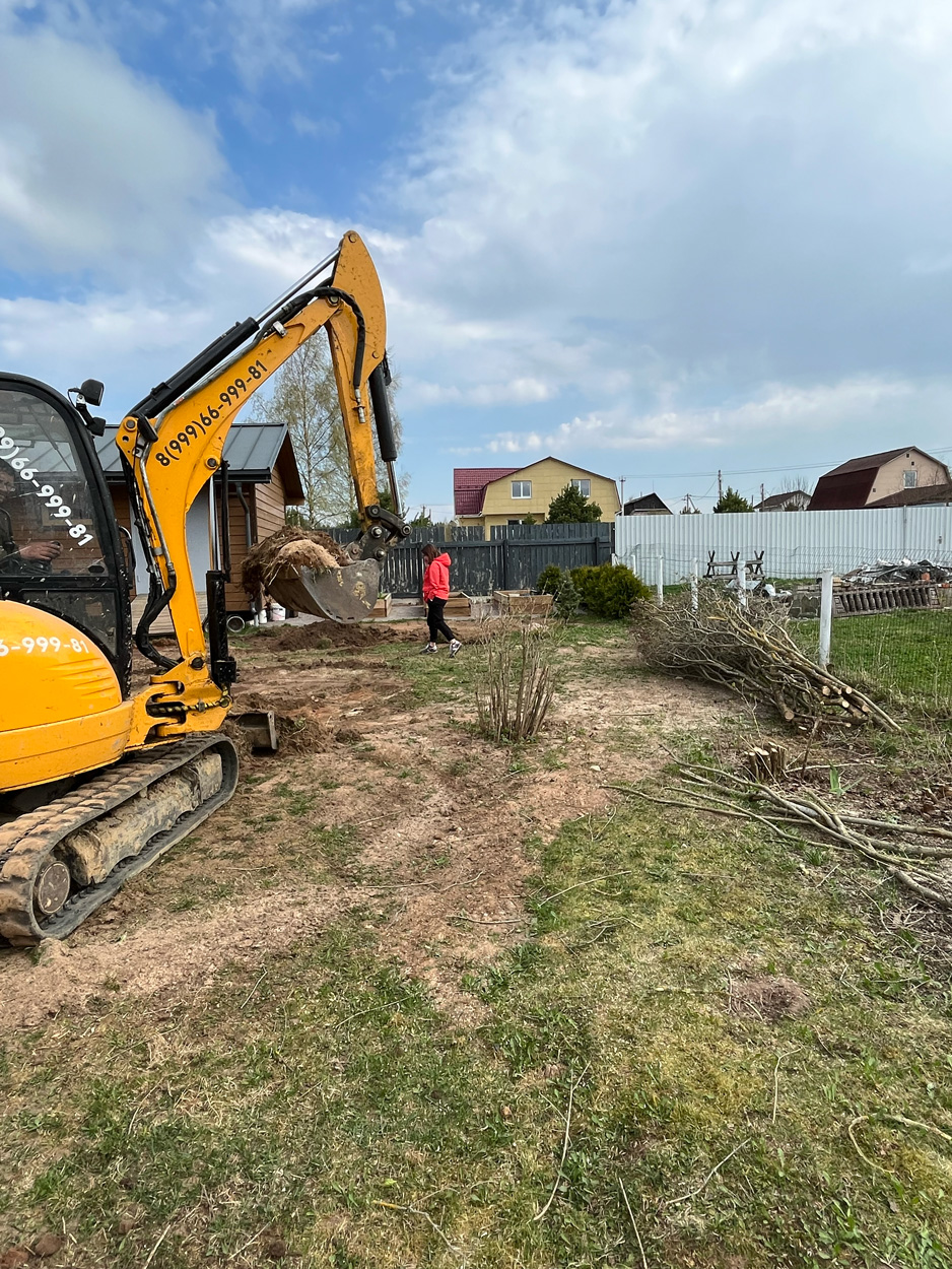 Работа с применением спец. техники и ручной труд при подготовки участка является неотъемлемой частью работы над ландшафтным дизайном.